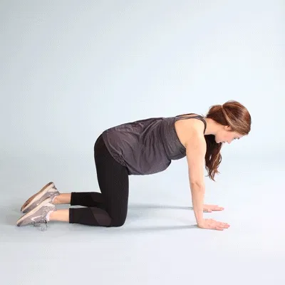 Duduk berlutut, hulurkan tangan ke depan dan turunkan pinggul ke arah tumit. Regangan lembut ini membantu melegakan tekanan pada tulang belakang dan otot belakang bawah.