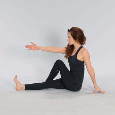 Duduk tegak, silang satu kaki di atas kaki yang lain, dan pusing badan perlahan-lahan ke arah kaki di atas. Pergerakan ini mengekalkan kelenturan sendi tulang belakang dan membantu pergerakan berpusing yang lebih lancar. Jangan paksa — jika terasa sakit, berhenti segera.